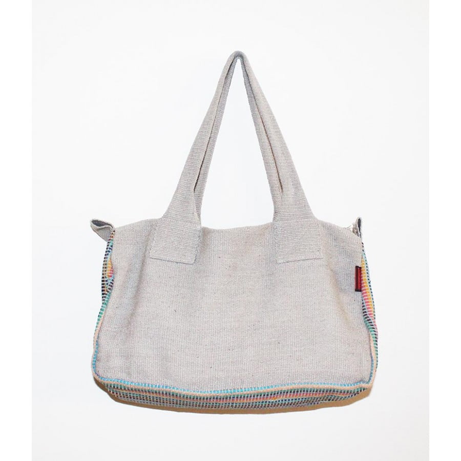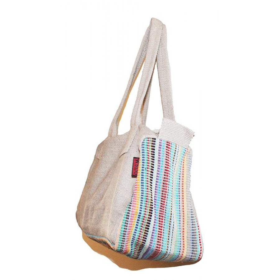 This bag is 100% cotton and handmade in Nepal. The outline is colourful representing the shades of the rainbow.